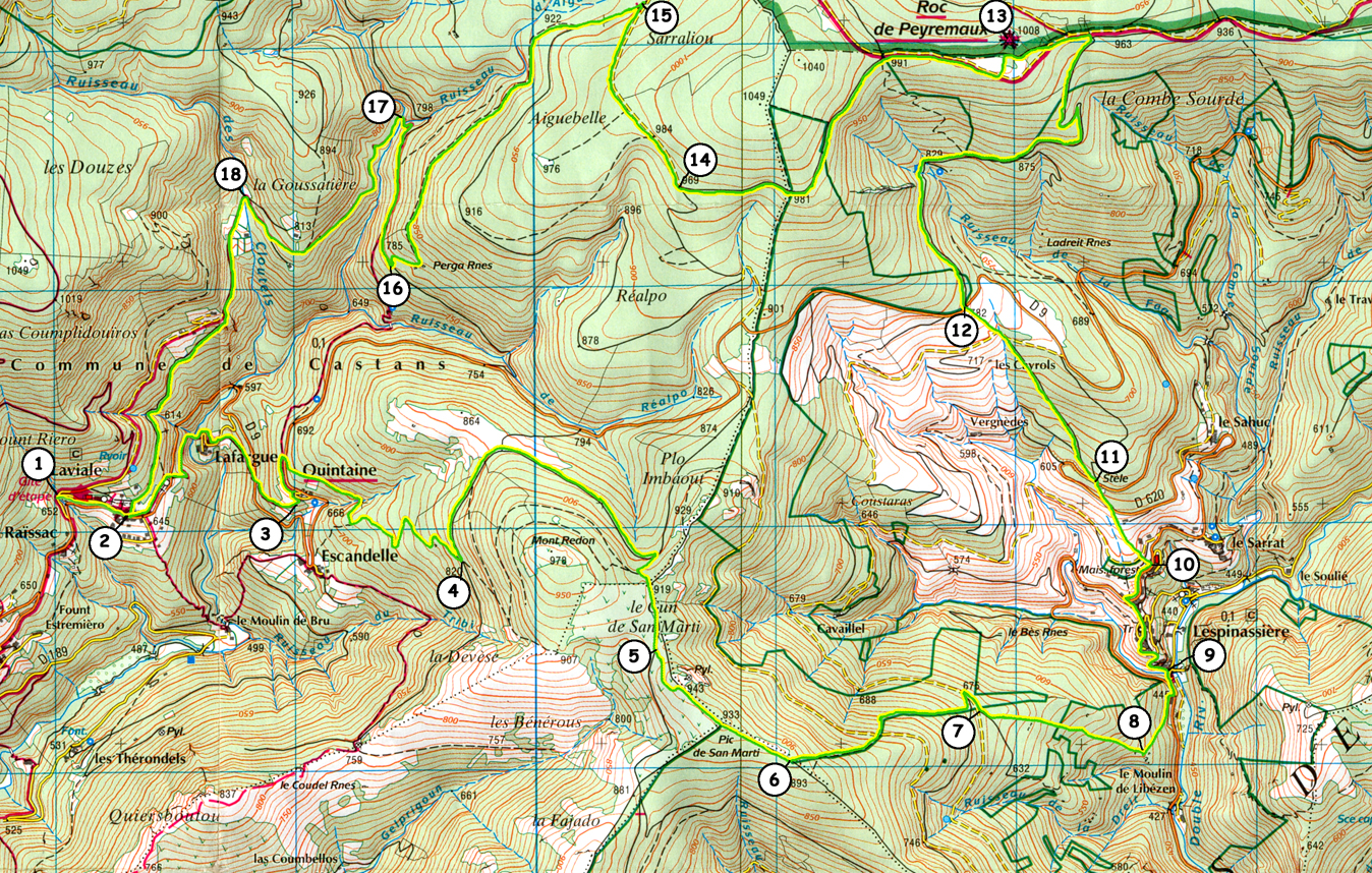 Cela forme une boucle qui peut être commencée, au choix, à partir de Castans