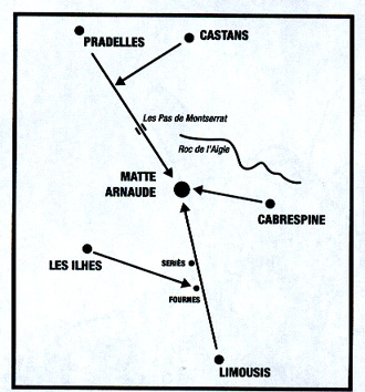 Pradelles : direction D101 Pic de Nore par Lastours ou Cabrespine, D112.