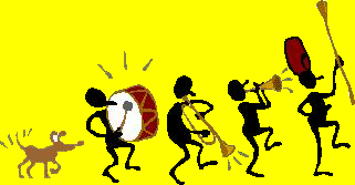 on part en cortège musical jusqu'à la salle polyvalente